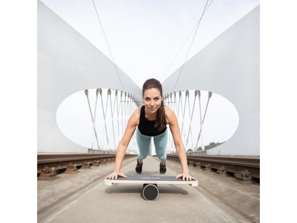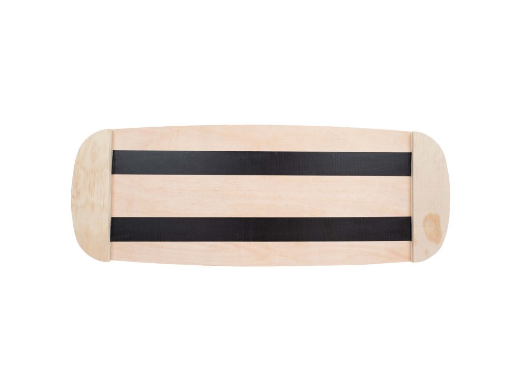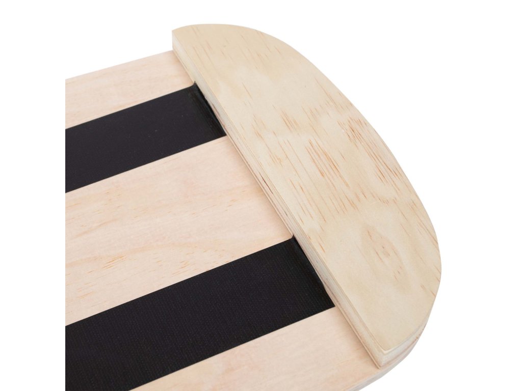 Das Holzbrett ist auf der Oberseite mit einer rutschfesten Beschichtung versehen und die Enden der Unterseite des Brettes sind mit Anschlägen versehen, die verhindern, dass das Brett vollständig vom Zylinder rutscht. Wenn Sie eine glatte Oberfläche wählen, rutscht die Rolle mehr und die Übung wird anspruchsvoller. Wird die Rolle auf den Teppich gestellt, wird das Balance Board handlicher und das Training wird für Anfänger einfacher.