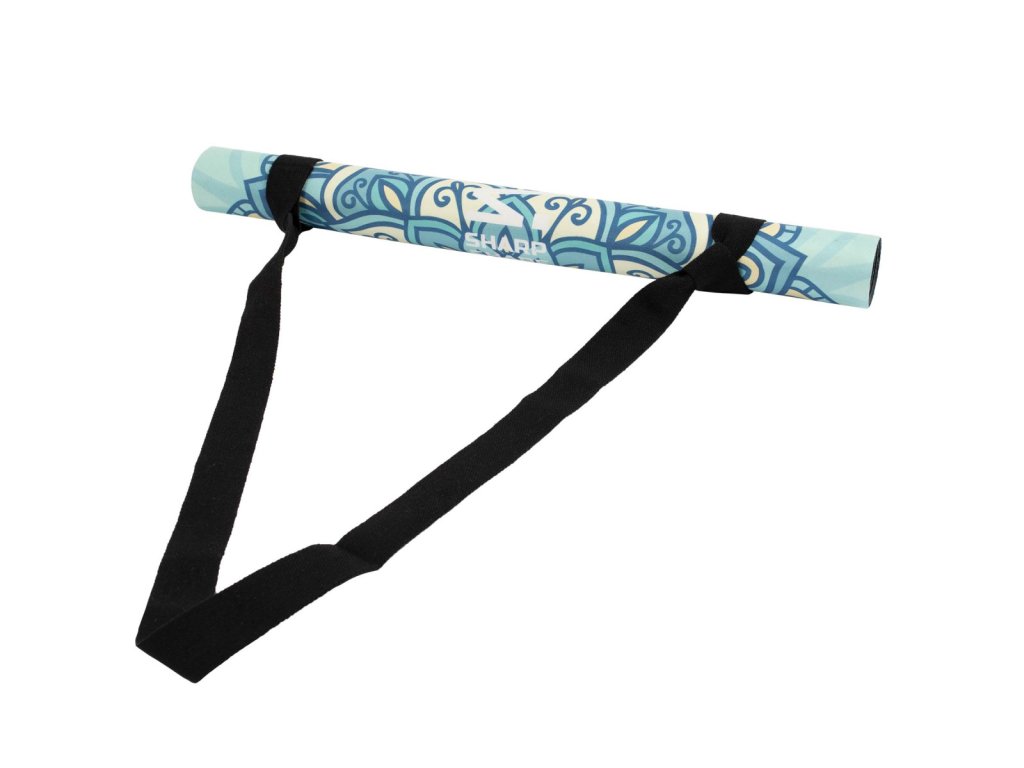 Im Lieferumfang ist ein Gurt enthalten, der an beiden Enden um die aufgerollte Matte gewickelt wird, so dass man sie sich einfach über die Schulter hängen und zum Unterricht gehen kann. Sie können ihn auch im Yogastudio verwenden, wenn Sie ihn auf die Matte legen, die in der Halle für die Praktizierenden bereit liegt. Mit der Reisematte Sharp Shape können Sie immer und überall auf Ihrer Lieblingsmatte trainieren.