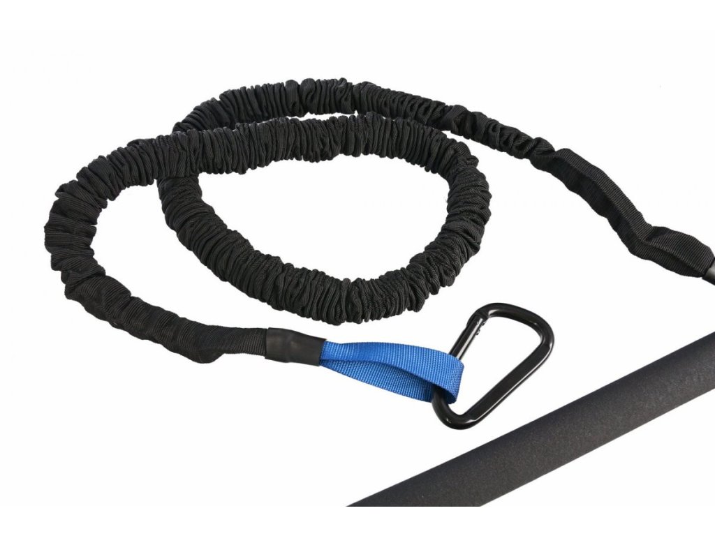 Hebelstange mit elastischem Gummi auf einer Seite, Länge der angeschlossenen Stange 100 cm, Länge des Gummis im Ruhezustand 160 cm.