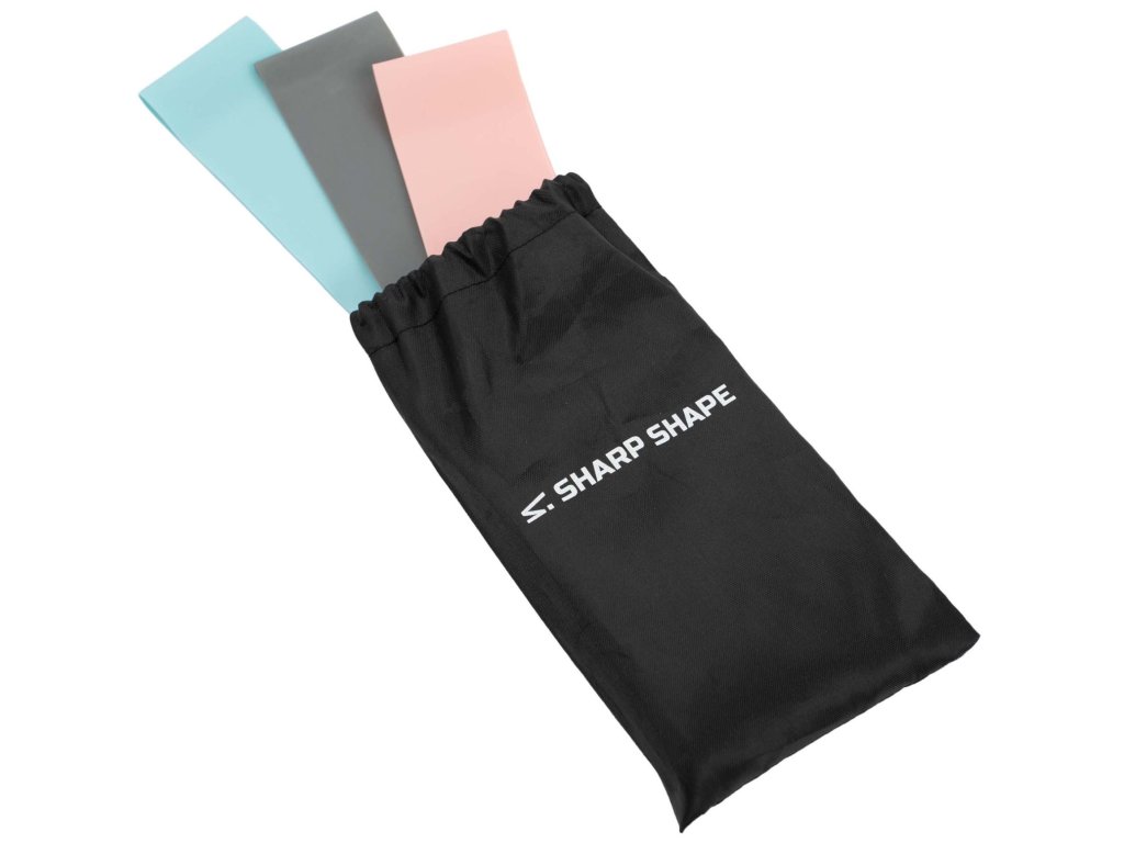 3er-Set Krafttraining-Widerstands-Mini-Loop-Gummibänder, Länge 50 cm, Breite 5 cm, inkl. Tragetasche. 3er-Set Krafttraining-Widerstands-Mini-Loop-Gummibänder Sharp Shape wird inkl. praktischer Tragetasche geliefert. Jeder Belag bietet einen anderen Widerstandsgrad, so dass Sie sie je nach Schwierigkeitsgrad der Übungen kombinieren können.
