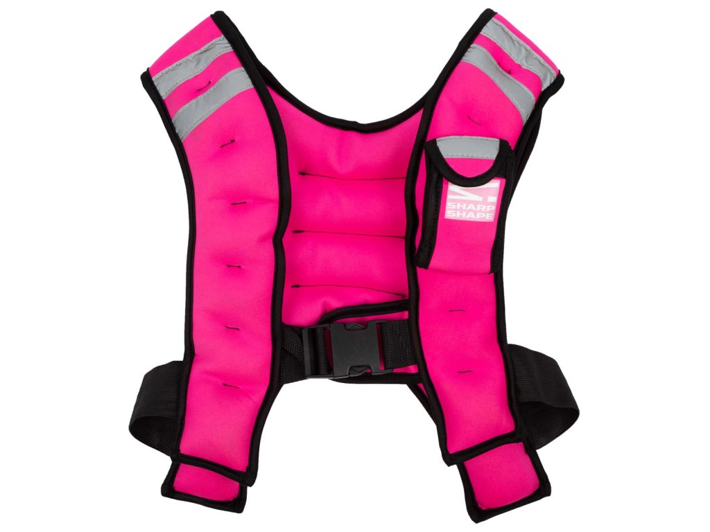 Gewichtsweste, Gewicht 5 kg, Universalgröße, Handytasche, reflektierende Elemente für bessere Sichtbarkeit. Bringen Sie Ihr Training mit der Gewichtsweste Sharp Shape auf das nächste Level. Sie besteht aus Neoprenmaterial, das Sie auch beim härtesten Training nicht einschränkt. Es handelt sich um eine Einheitsgröße, die durch seitliche Gummibänder und einen Schiebeschnallenverschluss auf der Brust fest am Körper gehalten wird.