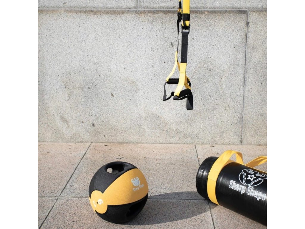 Mit dem einzigartigen Schwebesystem Sharp Shape können Sie durch Ihr Eigengewicht effektiv die Muskulatur des gesamten Körpers stärken. Das System besteht aus Gurten, Karabinern und Schnallen, die es ermöglichen, praktisch überall zu trainieren. Deshalb wird eine praktische Transporttasche mitgeliefert.