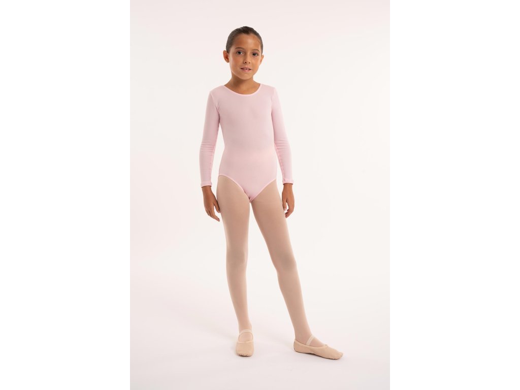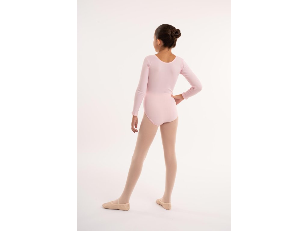 Dres je vyroben z elastického polyamidu, který zajišťuje příjemný pocit na těle a maximální volnost při cvičení. Je ideální pro baletní lekce, taneční tréninky nebo gymnastická cvičení, kdy potřebuješ komfort a neomezený pohyb. Design s dlouhými rukávy zároveň udržuje svaly v teple během zahřívání i náročnějších sekvencí. Elegantní střih s decentním scoop výstřihem vzadu podtrhne ladnost každého pohybu.