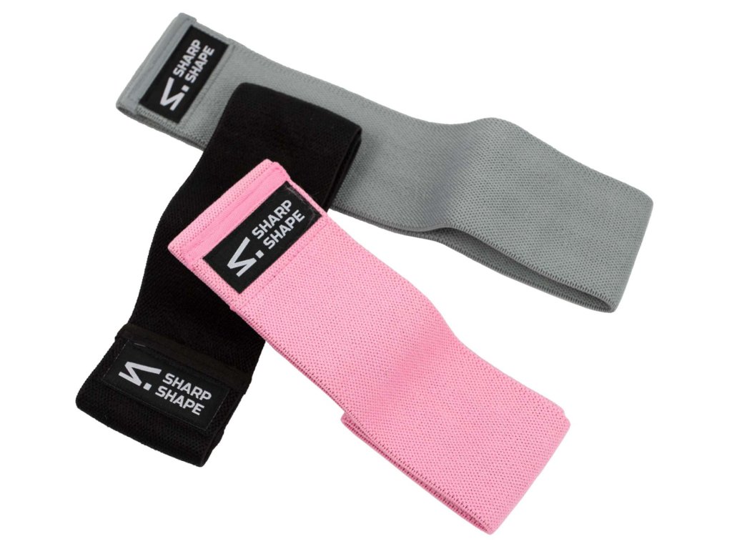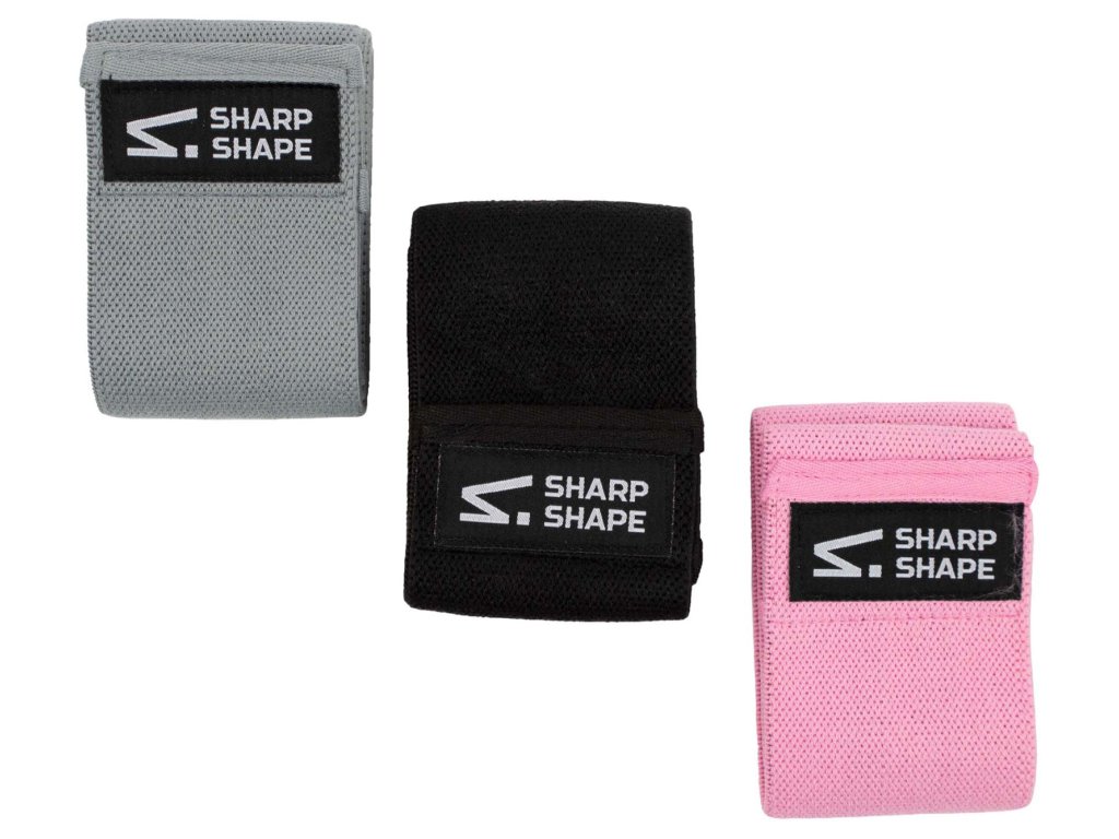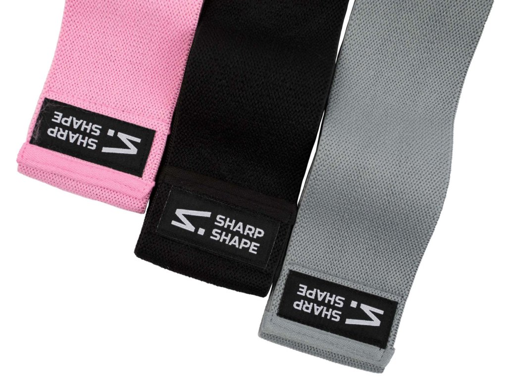 Textile strengthening elastics, length 38 cm, width 8 cm, resistance: 9 - 32 kg. In this set you will find 3 Sharp Shape Hip Band rubber bands that will help you train your shoulders, arms, thighs and buttocks. Each rubber offers a different level of resistance, so you can easily choose the appropriate load according to your current physical strength and mood.