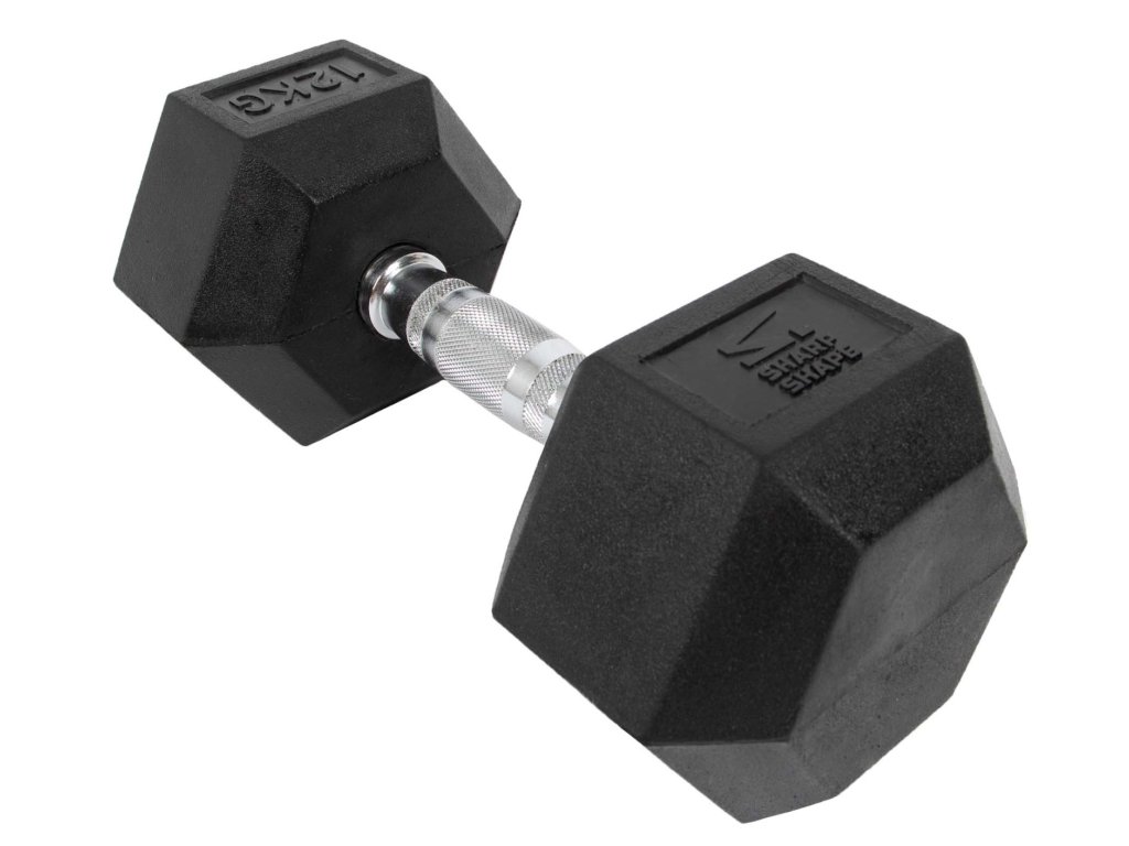 One-hand dumbbell, weight 12 kg, material metal, rubber surface, ergonomic handle shape. The Sharp Shape HEX dumbbell is a quality product that you can use for home workouts, functional training, and crossfit. The hexagonal heads ensure safety and stability, so they are also suitable for performing the so called. Pushup Walks.