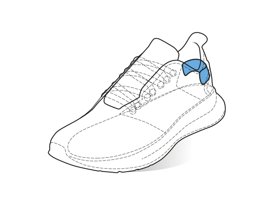 Po odstranění ochranné fólie se lepí přehnutá patička od středu paty obuvi. Je určena pro jednorázové nalepení.
