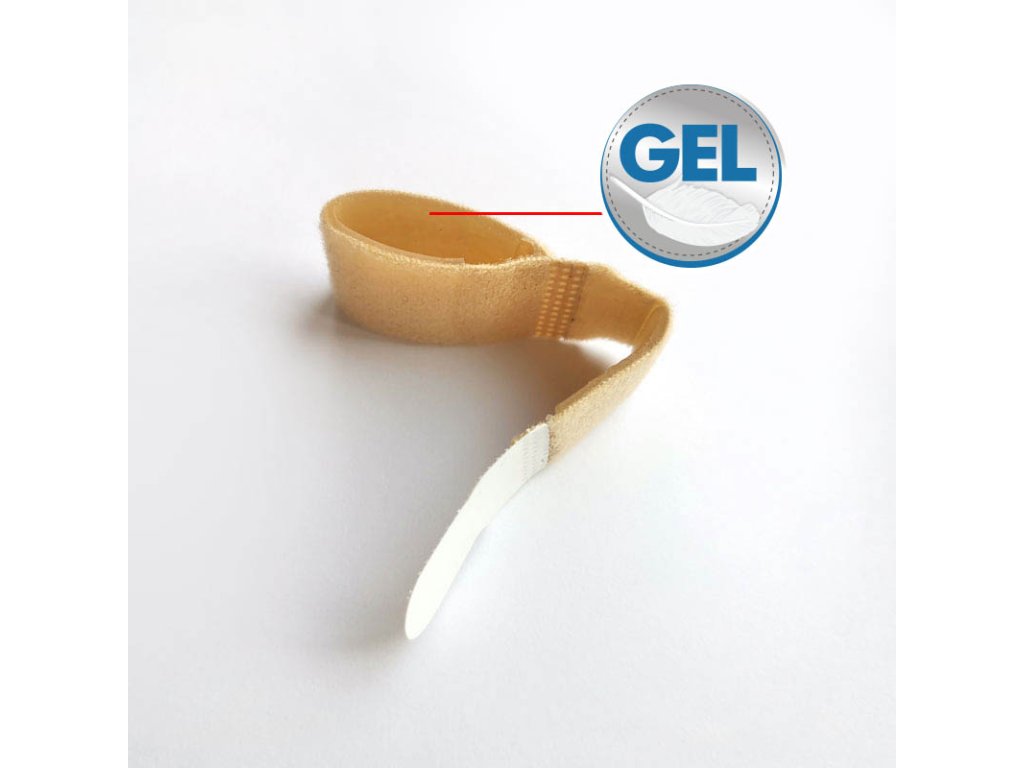 Jemný textilní proužek se suchým zipem a gelovým vyměkčením. K pevné fixaci dvou prstů.Balení obsahuje 1 kus.