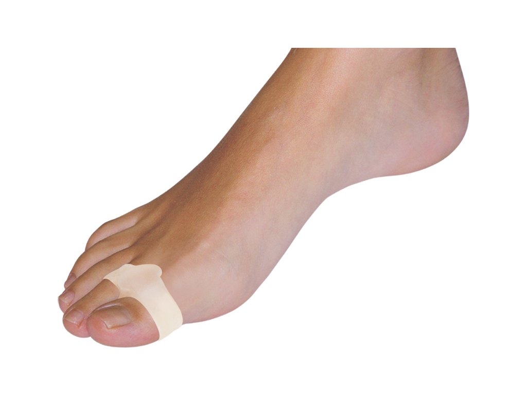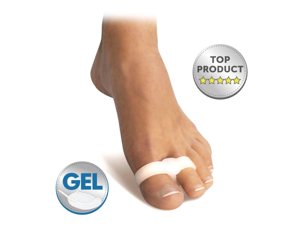 Dvojitý kroužek navléknutý na palec a druhý prst dokonale fixuje korektor v prostoru mezi prsty. Měkký gel zajišťuje mimořádnou měkkost a pružnost výrobku. Zabraňuje tření a odřeninám.