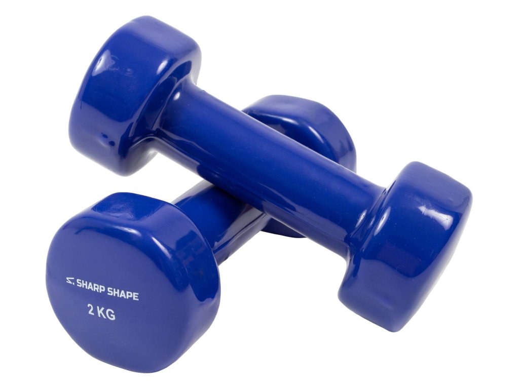 Egykezes súlyzókészlet, 2 × 2 kg, vinil bevonatú, kék színű.