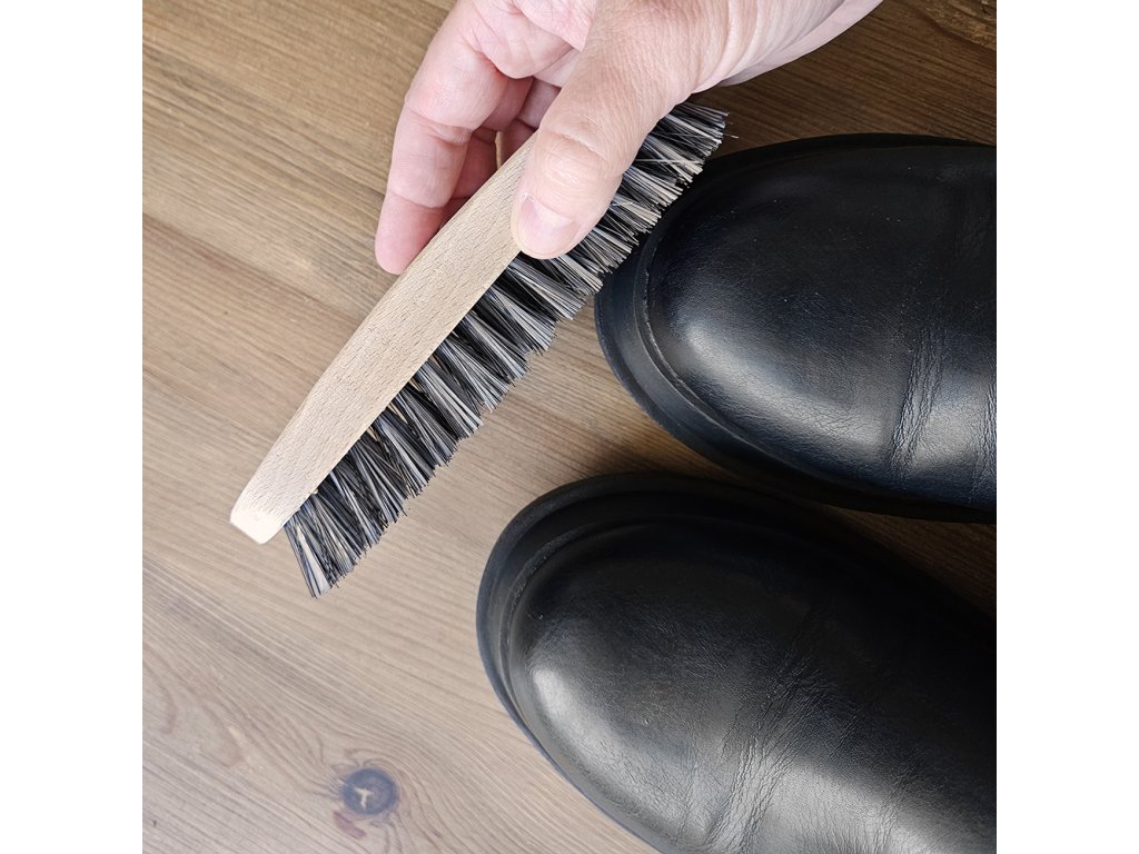 Díky tvrdým štětinám je skvělým pomocníkem k odstraňování hrubých nečistot z obuvi.