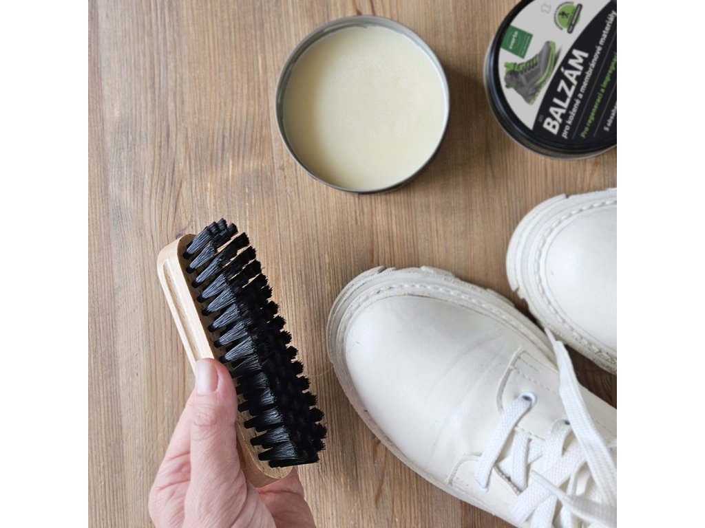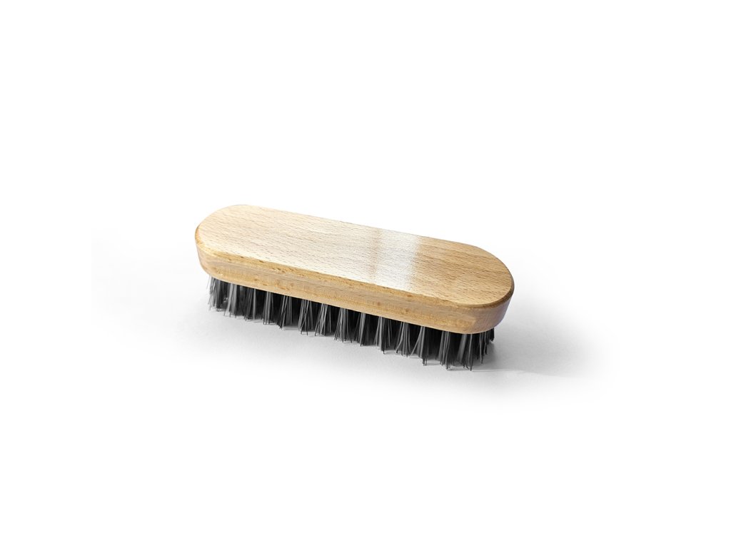 Kartáč leštící s jemnými štětinami sloužící k rozleštění krému na obuvi a tím dosažení vysokého lesku. Hodí se také pro čištění obuvi od prachu a jemných nečistot.Kartáč blátový je díky tvrdým štětinám skvělým pomocníkem k odstraňování hrubých nečistot z obuvi.● 13,5 cm● dřevěný držák● lakované provedeníVyrobeno v České republice.