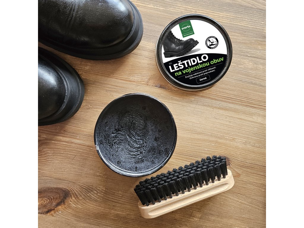 Upozornění:Výrobek nedoporučujeme pro vlasové materiály typu nubuk/velur a na materiály s neupravovaným lícem. Návod na použití: Nanášejte na čistou a suchou obuv. Pro lepší aplikaci doporučujeme, aby měla obuv i krém pokojovou teplotu. Nechejte přibližně 30-45 minut volně zaschnout a pak vyleštěte pomocí lešticího kartáče nebo měkkým hadříkem. Doporučení: Používejte na obuv s hladkým popřípadě tlačeným lícem. Výrobek Ize střídavě kombinovat s dalšími přípravky pro zvýšení vodoodpudivosti např. 323 Aquastop. Receptura je přizpůsobena k použití na obuv, která je vystavena náročným podmínkám např. pro obuv vojenskou, pracovní, turistickou. Skladování: plus 5 °C až plus 35 °C.Vyrobeno v České republice.