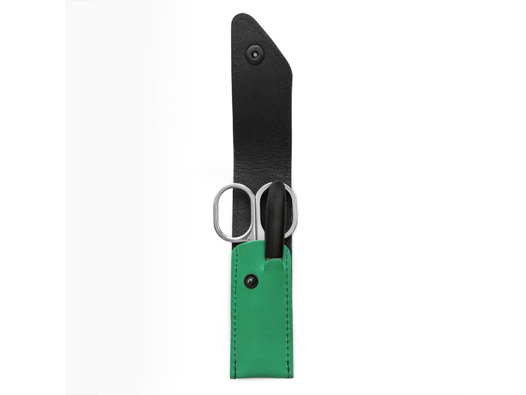 Kožené pouzdro s drukem − zelené 3,3 x 11 cm