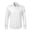 navrženo předním českým krejčím Romanem Humlíčkem, příze z extra dlouhých vláken, zúžený střih s bočními švy, dvojité sedlo a záševky na zadním dílu, dvoudílný košilový límec, vyztužené špičky límce, přední kraje začištěny légou, dlouhé rukávy s kulatou manžetou na 2 knoflíčky, perleťové knoflíčky v barvě 00 (2 náhradní navíc), tvarovaný dolní kraj