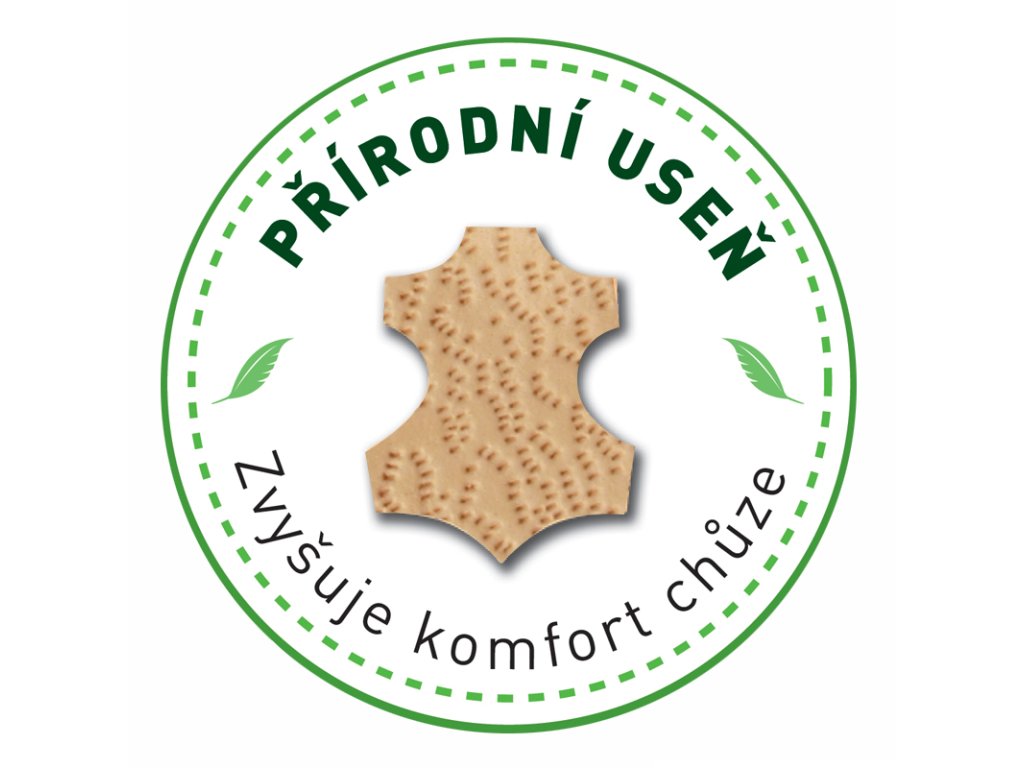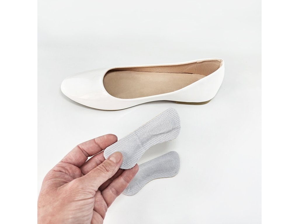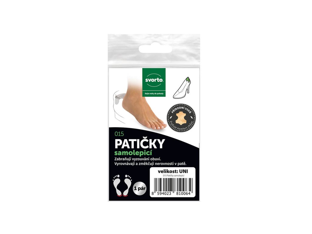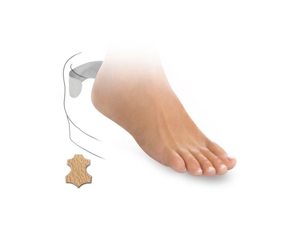 ● přírodní useň vyměkčená lehkou latexovou pěnou ● šedé● samolepicí fólie Přírodní hovězinová useň se zdrsněným povrchem, výplň ze šlehaného latexu a samolepicí fólie tvoří jednoduchou pomůcku se snadnou aplikací. Nejčastější využití je k zabránění vyzouvání obuvi, prevence vzniku otlaků v patě, vyrovnání nerovností v patní části obuvi. Tvar patičky koresponduje s tvarem patní části obuvi. Nákres v přibalovaném letáku znázorňuje ideální umístění patičky.Materiál: přírodní useň, latexová pěna, samolepicí fólie