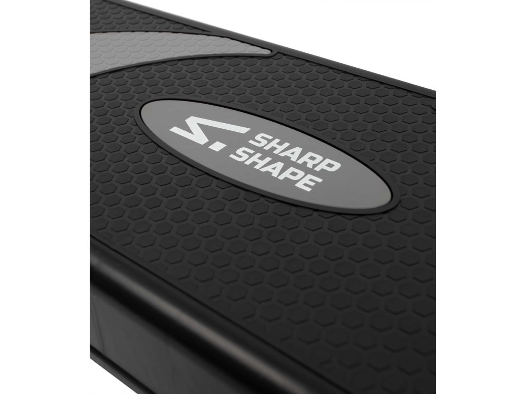 Stopień do aerobiku, antypoślizgowy bieżnik, 3 pozycje wysokości: 10 cm, 15 cm, 20 cm, waga 4,3 kg, materiał utwardzony plastik, nośność 100 kg. Stepper aerobowy SH200 Sharp Shape to wielofunkcyjne urządzenie do ćwiczeń w domu i na siłowni. Podczas ćwiczenia można ustawić trzy poziomy wysokości, a tym samym wpływać na trudność ćwiczenia.