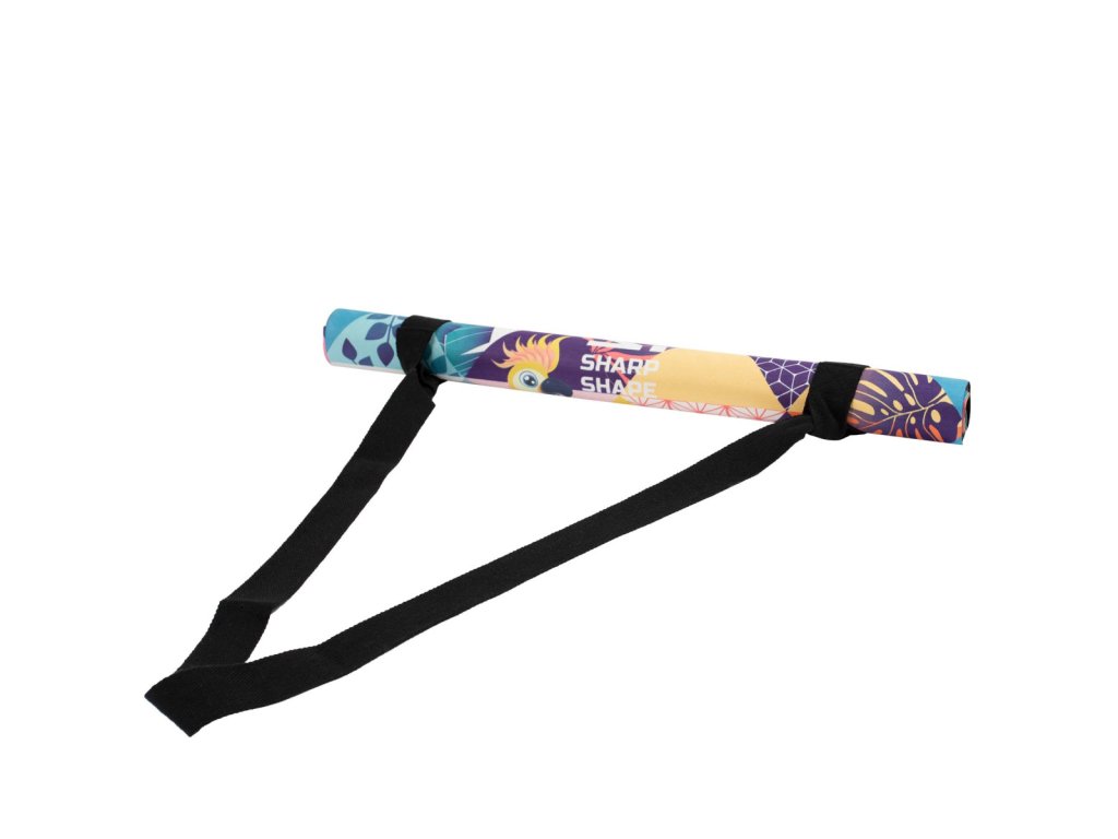 W zestawie znajduje się pasek, który owija się wokół zwiniętej maty na obu końcach, dzięki czemu można ją łatwo przewiesić przez ramię i udać się na zajęcia. Można z niego korzystać także w studiu jogi, kładąc go na macie przygotowanej w sali dla ćwiczących. Dzięki macie podróżnej Sharp Shape zawsze będziesz mógł ćwiczyć na swojej ulubionej macie, gdziekolwiek będziesz.