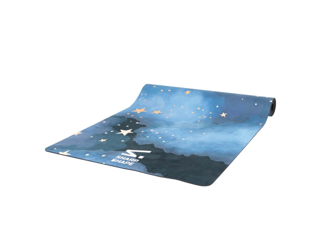 Mata do jogi dla dzieci, zamszowa mikrofibra, 100% naturalny kauczuk, wymiary: 153 cm x 61 cm x 3,5 mm, można prać w pralce. Designerska mata dziecięca Sharp Shape ECO MAT NIGHT jest jednocześnie praktyczna i stylowa.