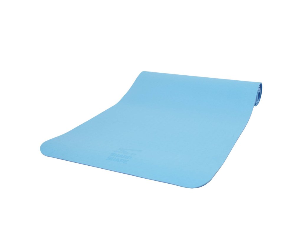 Sharp Shape matę możesz stosować w domu i na siłowni. Minimalna waga (900 g) i grubość (0,6 cm) ułatwiają transport. W zestawie znajduje się praktyczny pasek do przenoszenia.