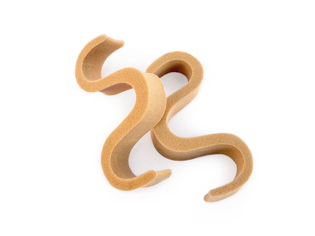 ● měkký prodyšný materiál Používá se při problémech s kladívkovými prsty. Vkládá se mezi postižené prsty, čímž je od sebe odtlačuje. Materiál: lehčená EVA pěna