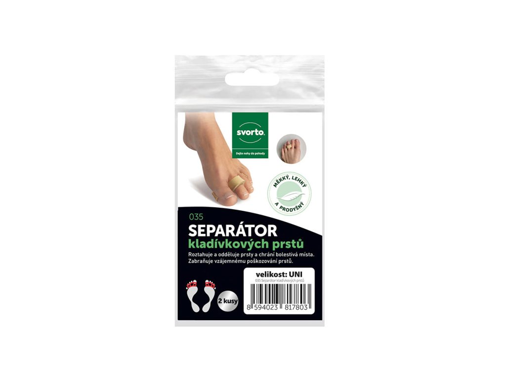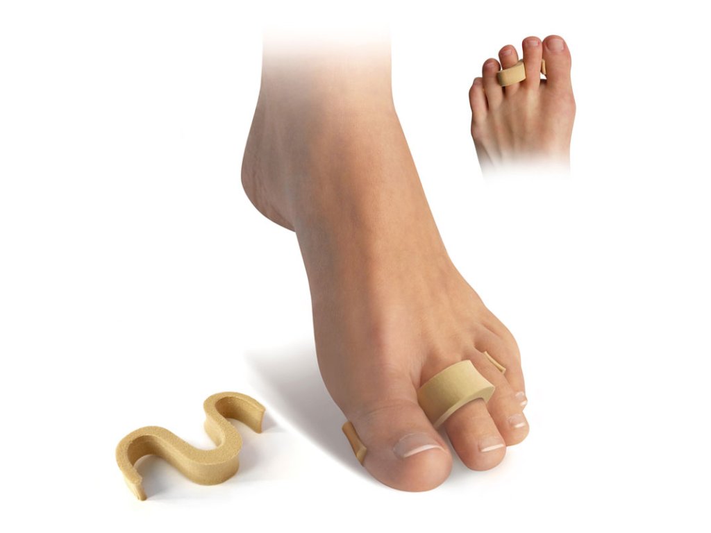 Roztahuje a odděluje prsty a chrání bolestivá místa.Zabraňuje vzájemnému poškozování prstů.