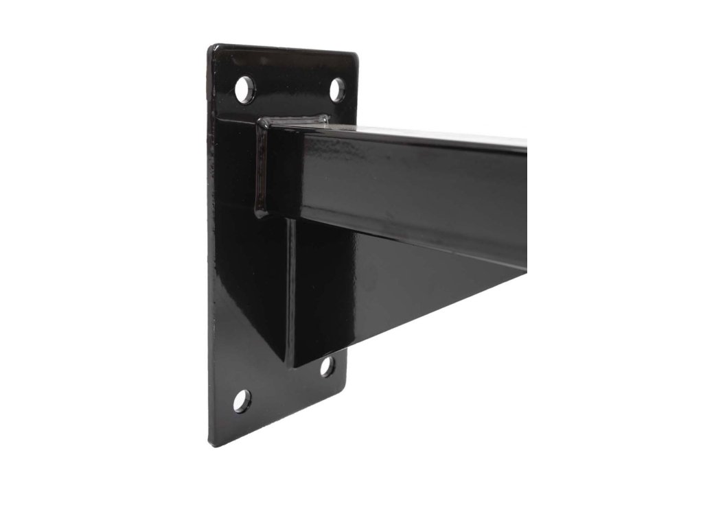Dvě plochy přiléhající na stěnu, každá o ploše: 9,5 x 19,5Tip:1. Hlavička šroubu patří dovnitř, matka patří z venku.2. S namontovanou matkou zatlučte do díry, poté matku odšroubujte.3. Na šroubení přiložte konzoli a poté utáhněte matkou.4. Hlava šroubu po utažení roztáhne kovovou hmoždinku a hrazda drží.