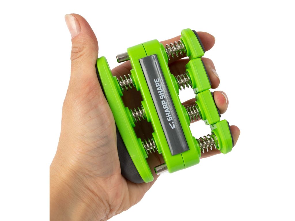 Cvičiteľ prstov, posilňuje predlaktia, dlane, prsty, ľahko sa skladuje a prenáša, stredný odpor 4,1 kg. Posilňovač prstov Sharp Shape má vďaka svojej konštrukcii oddelené pružinové tlačidlá, s ktorými precvičíte každý prst zvlášť. Ergonomicky tvarovaná rukoväť padne do dlane a zaručuje pohodlie počas cvičenia.