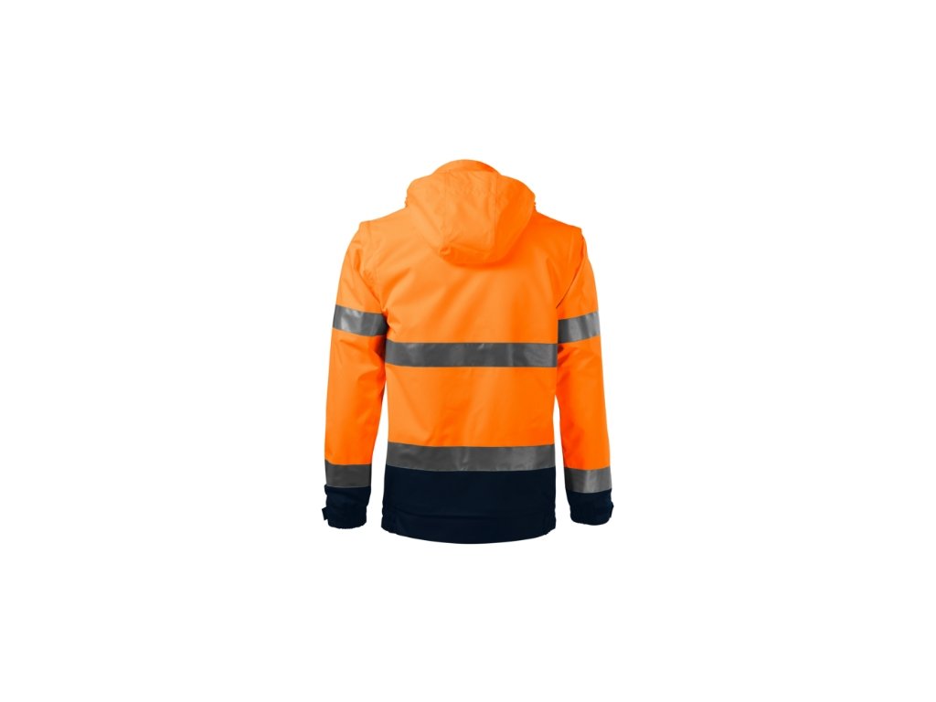 oděv s vysokou viditelností, víceúčelové použití 4 v 1 v dvoubarevném provedení, Svrchní bunda:, voděodolný, prodyšný, fluorescenční materiál, certifikované retroreflexní pruhy 3M, celopropínací kostěný zip s klopou, odnímatelná kapuce s vyztuženým kšiltem, skrytá v límci, kapuce a dolní lem na stažení elastickou šňůrkou, odnímatelné rukávy, lemy rukávů stažené pruženkou, nastavitelné suchým zipem, měchové kapsy s klopou a boční kapsy, náprsní kapsa na zip s klopou, kapsa na ID kartu a propisky, podlepené švy, vstup pro branding v podšívce zadního dílu, certifikace dle norem EN ISO 20471 (třída 3, 1), EN 343+A1 (třída 3:1) a EN ISO 13688, Vnitřní fleece:, odnímatelná vnitřní fleecová bunda, hřejivý fluorescenční materiál, certifikované retroreflexní pruhy 3M, celopropínací kostěný zip, kapsy s kostěným zipem, lemování elastickým proužkem, antipilingová úprava z obou stran, certifikace dle norem EN ISO 20471 (třída 2) a EN ISO 13688